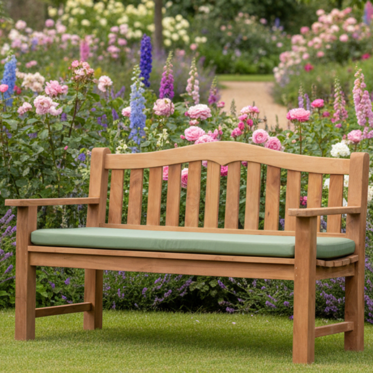 This outdoor cushion is custom-made to fit both our Riverbank and Raffles benches. Available in three sizes and colours.